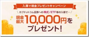 カブドットコム証券が先日より「入庫で現金プレゼントキャンペーン」 を開催しています。もうすでにご存じの方も多いと思いますが、実は下 記で後述しますが、今回のこのキャンペーンは本当にこれだけでいいの かと不安になるほど個人 … 続きを読む これだけでいいの?IPO閑散期に超オススメ!カブドットコム証券の入庫で現金プレゼントキャンペーンが驚くほど簡単だった!